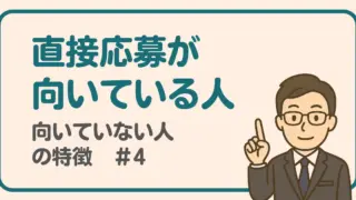 人事のホンネ人事のホンネ|直接応募が向いている人・向いていない人の特徴#4 転職エージェントを利用するデメリットを理解したうえで、“直接応募”を検討している方は少なくありません。しっかり準備できる人には大きなメリットがありますが、そうでない人にとっては逆にリスクにもなりえます。「直接応募に向いている人・向いていない人の特徴」 を整理しました。人事のホンネ