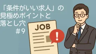 キャリア・考え方「条件がいい求人」にはワナがある?見極めのための本音ガイド#9 はじめに:「条件がいい求人」に感じる不安、ありませんか?転職活動中に「高収入」「年間休日120日以上」「残業なし」といった求人を見ると、魅力的に感じますよね。でも、実際に入職してみると「思ってたのと違った…」という声も少なくありません。この...キャリア・考え方