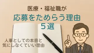 はじめに看護師などの医療職や介護職の転職で、「給与を上げたい」と考えて転職する人は多いと思います。ただ、人事として多くの採用面接を行ってきた経験から言うと――“給与アップだけ”を軸に動くと、後悔につながるケースが非常に多いのも事実です。本記...
